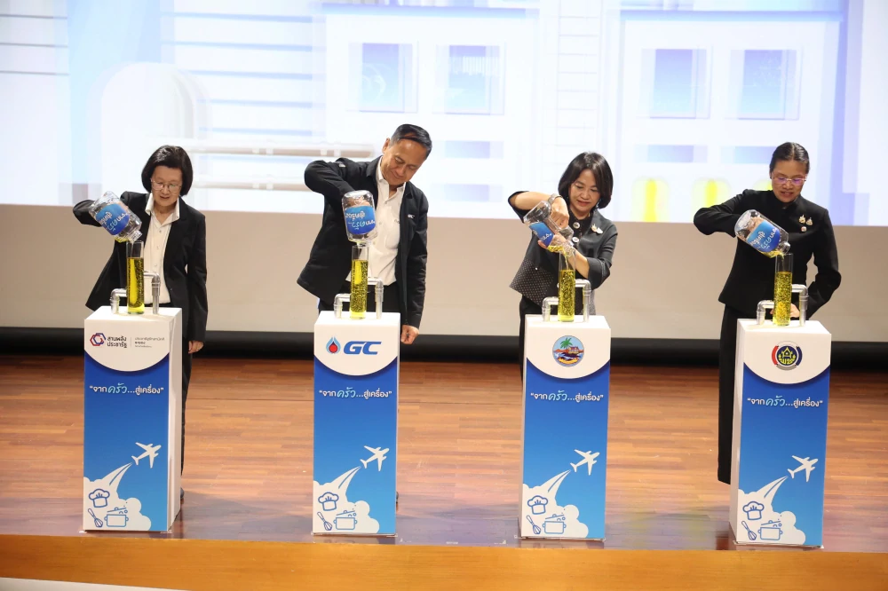 โครงการความร่วมมือ “จากครัว...สู่เครื่อง” สานต่อความสำเร็จของ GC ในการผลิต SAF จากน้ำมันพืชใช้แล้ว ซึ่งไม่เพียงช่วยลดการปล่อยก๊าซเรือนกระจกในอุตสาหกรรมการบิน แต่ยังเป็นการนำ ของเสียกลับมาสร้างคุณค่าใหม่ตามหลักเศรษฐกิจหมุนเวียน (Circular Economy) โดยได้ดำเนินโครงการนำร่อง ภายใต้ความร่วมมือของภาคีเครือข่าย ศูนย์บริหารและจัดการขยะรีไซเคิล และพันธมิตรรวม กว่า 22 แห่งในจังหวัดระยองและจังหวัดใกล้เคียง ระหว่างเดือนสิงหาคม - ตุลาคม 2568 ที่ผ่านมา สามารถรวบรวม UCO ได้ 7.09 ตัน ผลิตเป็น SAF ได้ 1.75 ตัน สร้างรายได้ให้ชุมชนกว่า 215,000 บาท และลดการปล่อยก๊าซเรือนกระจกได้ 5,654.98 กิโลกรัมคาร์บอนไดออกไซด์เทียบเท่า